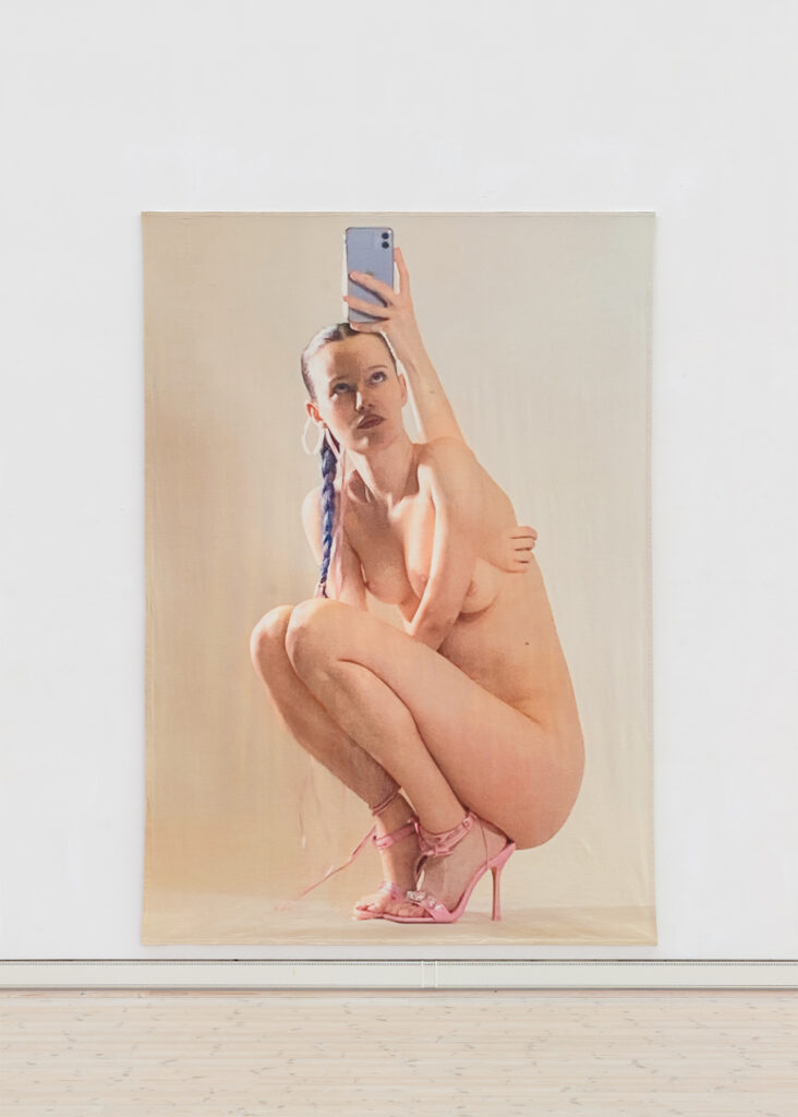 Bag værkerne i udstillingen står den svenske kunstner, Arvida Byström. I ’In the Clouds’ – en titel der refererer til dataskyen – arbejder hun med krop, identitet, køn og kunstig intelligens, og sætter fokus på de bias og stereotyper, som AI reproducerer og forstærker.
